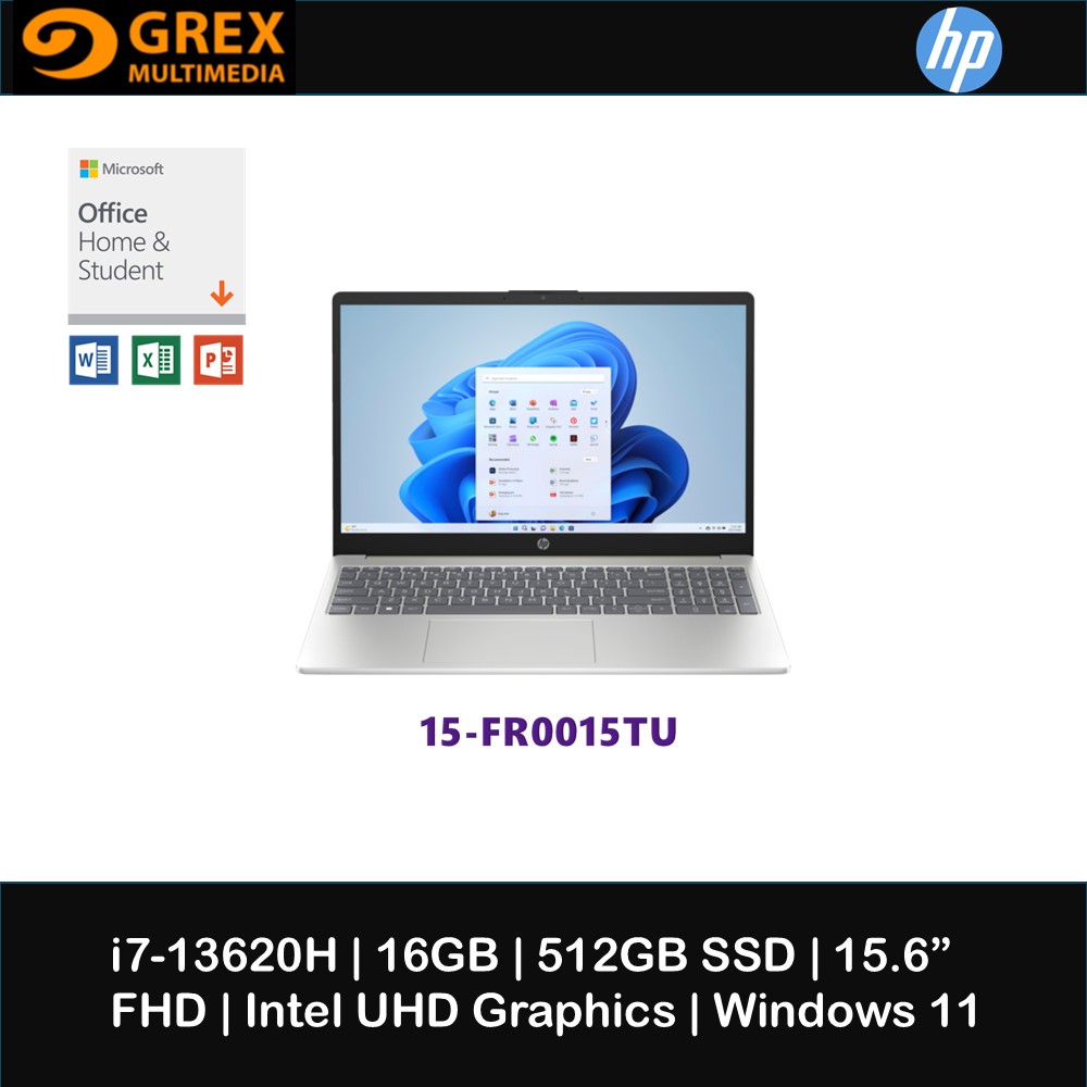 HP 15-FR0013TU/FR0014TU/FR0015TU 15.6" FHD Laptop ( i7-13620H, 16GB, 512GB SSD, Intel, W11, HS+M365 )
